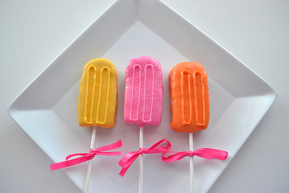I asked Ella at Ella Sugar Boutique to help out with an idea for the popsicle party, and she came up with an easy-to-follow diy tutorial for popsicle cake pops! We’ll post more party inspiration ideas later this week, but I wanted to get you started with this adorable tutorial. (Here’s how to find Ella on Facebook and Etsy.)