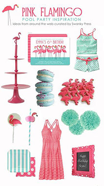 Flamingo Birthday Invitation: I designed the invitation with this party in mind. We usually invite 20 or so girls, so I loved the visual of a flock of flamingos in the water. The invitation will make the girls smile, but is still sophisticated enough to please mom. The 2 sided print adds a pop of color – and we can add your daughter’s photo to the back for a personal touch.