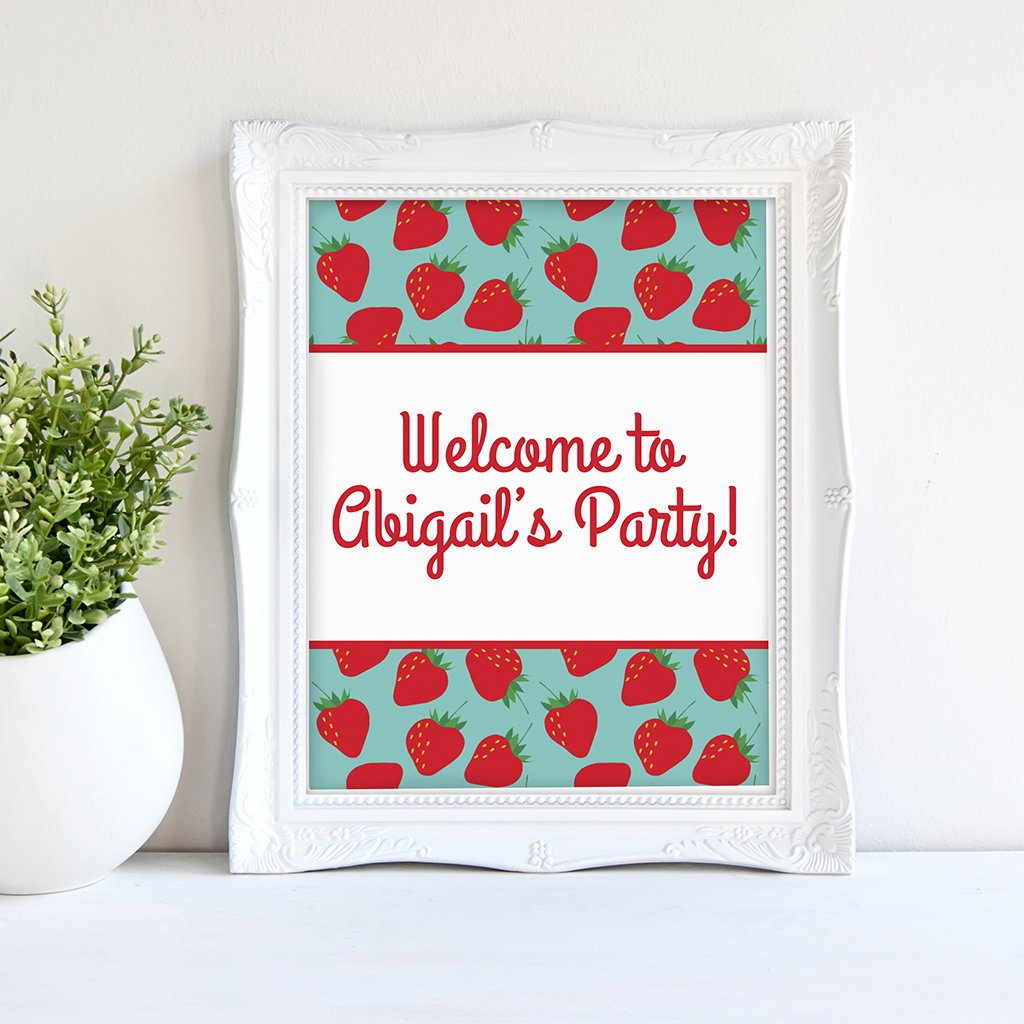 Keeping with our Strawberry theme this week, we have made a fee printable Strawberry Party Welcome Sign. The 8×10 inch sign is editable, so you can type in any wording you want!