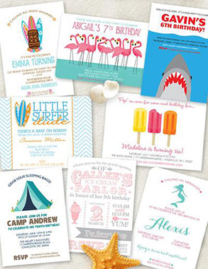 Summer is one of my favorite party seasons – and it’s the time of year I need to decide on the party for my youngest child. There are just so many fun summer themes to choose from: tiki party, flamingos, share party, popsicles…you name it! Here’s the roundup of the latest summer party designs from Swanky Press.