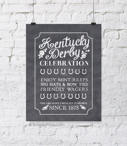 The 140th Annual Kentucky Derby will be held on May 3rd, and we’ve been busy filling tons of Derby orders. Our most popular design this year is a chalkboard style invitation, so I thought it would be fun to make a free printable to coordinate.