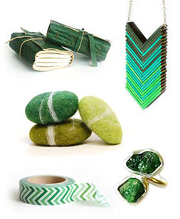 1) Leather Jourals, The Orange Windmill; 2). Chevron Ombre Necklace, Grete Botamidi; 3) Felted Stones, FeltJar; 4) Washi Tape, Back to Zero; 5) Fabulous Rough Emerald Twin Ring, Metalmorphoz