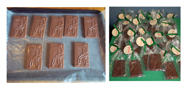 As you know, I’m a big fan of having a homemade touch at every party. Kathy took simple karate candy mold and made a chocolate bar for each guest to take home. The candy mold is only $1.75, so this is a very economical way to add a special touch to the party.