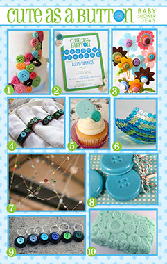 I had a wonderful, long-term client request a “cute as a button” baby shower invitation last week, and I thought I’d pull together some ideas for her to take her party over the top. I’ll be posting a DIY tutorial on Friday for the button flowers, so stay tuned!